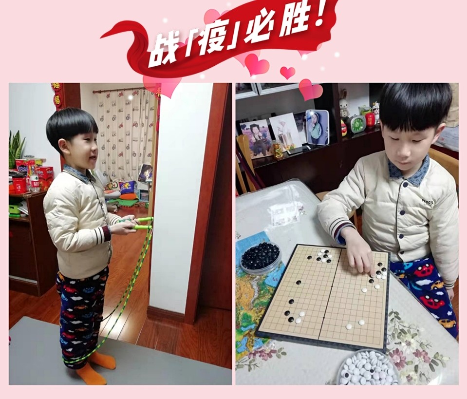 蓝村校区二2中队的徐梓皓和五2中队袁子萱同学在家里开辟了运动场,花样运动强身健体,战胜疾病保健康。