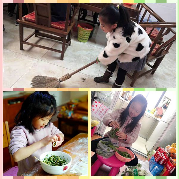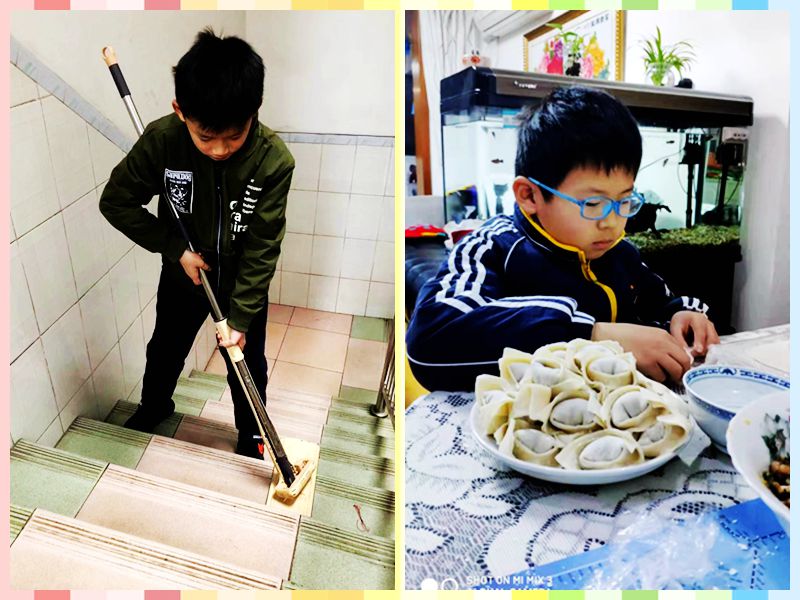 不仅仅是家中的清扫工作,心灵手巧的队员们还将目光投向了厨房。懿德校区二3中队的冯艺恬和二4中队的张胧月虽然只有两年级,但是她们都开始尝试包饺子、包春卷了,俨然一副“中华小当家”的样子。