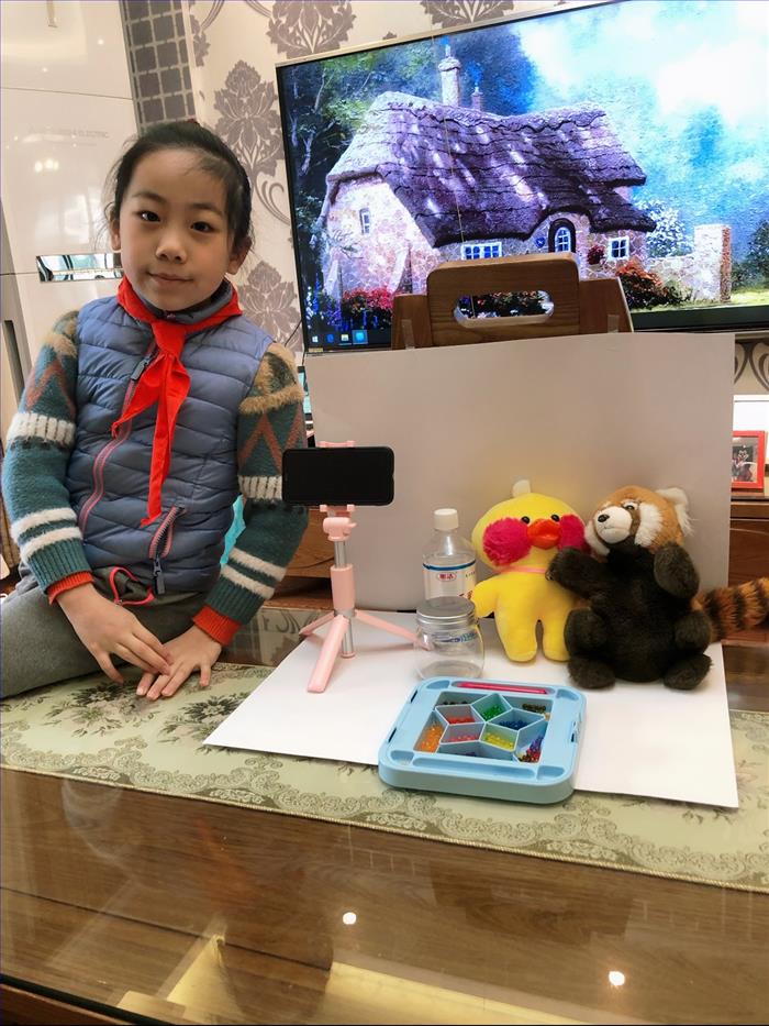 蓝村校区三1中队冯歆玥同学听到大队部的召集令,马上动员妈妈和她一起创作了《消毒水怎样配制》的生活小窍门短片,呼吁大家注意家庭卫生的防护!同时她还在家中通过下棋等娱乐活动让自己的“宅”生活更有趣!