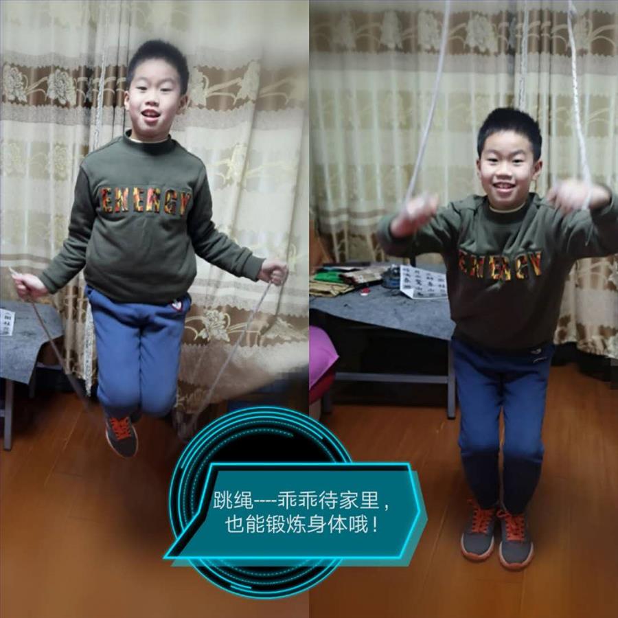懿德校区二4中队的谈一诺同学在学习、娱乐之余不忘锻炼身体,保护视力,以饱满的热情和健康的身体度过假期的每一天。