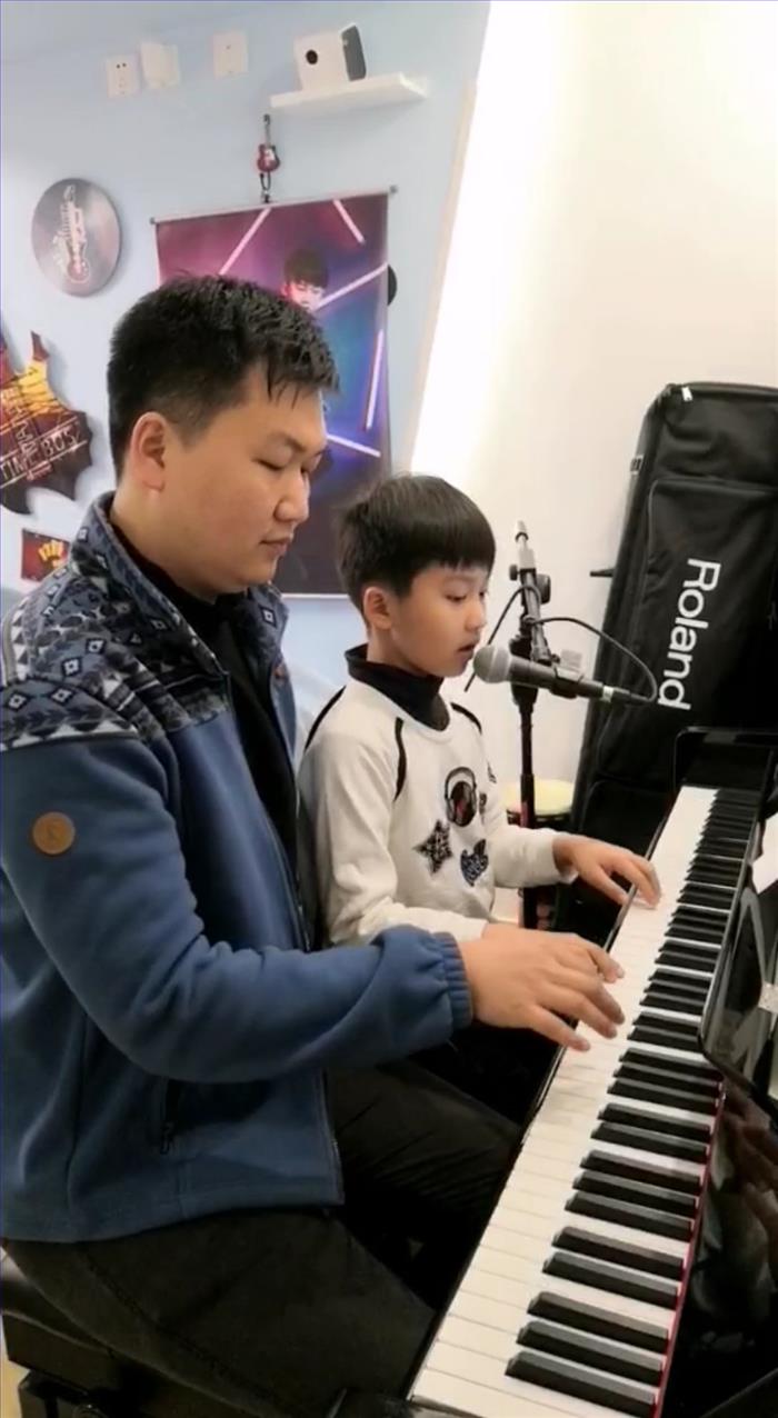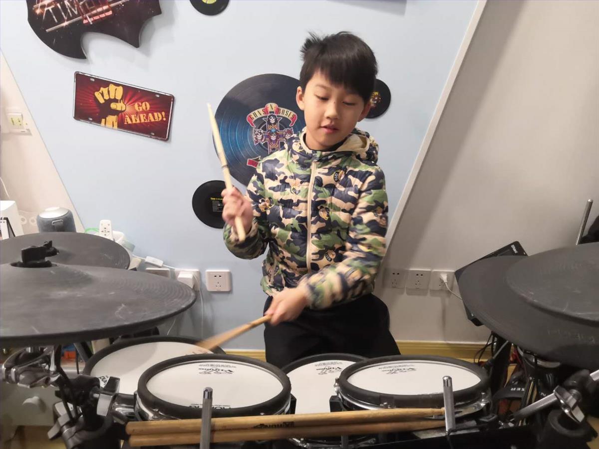 我和爸爸鼓励小黄同学做我们的小老师,把平时乐队课学到的本领学以致用,于是他就模仿起了他的乐队老师开始教我打鼓,教爸爸弹琴,我们在家一起组乐队玩音乐。