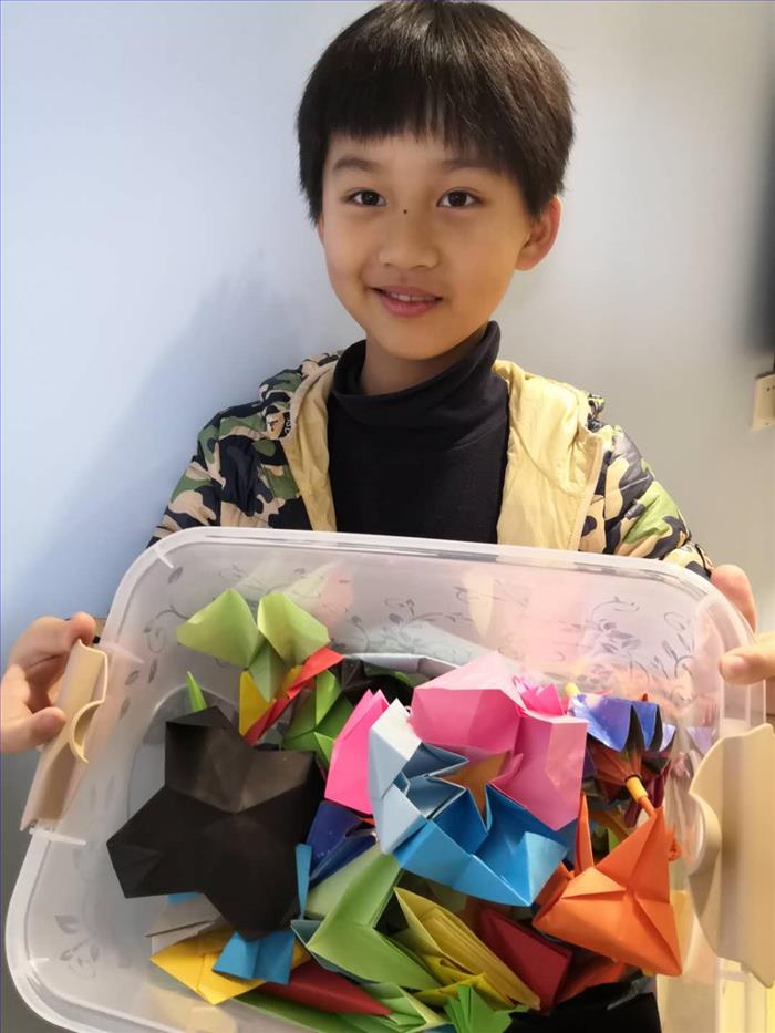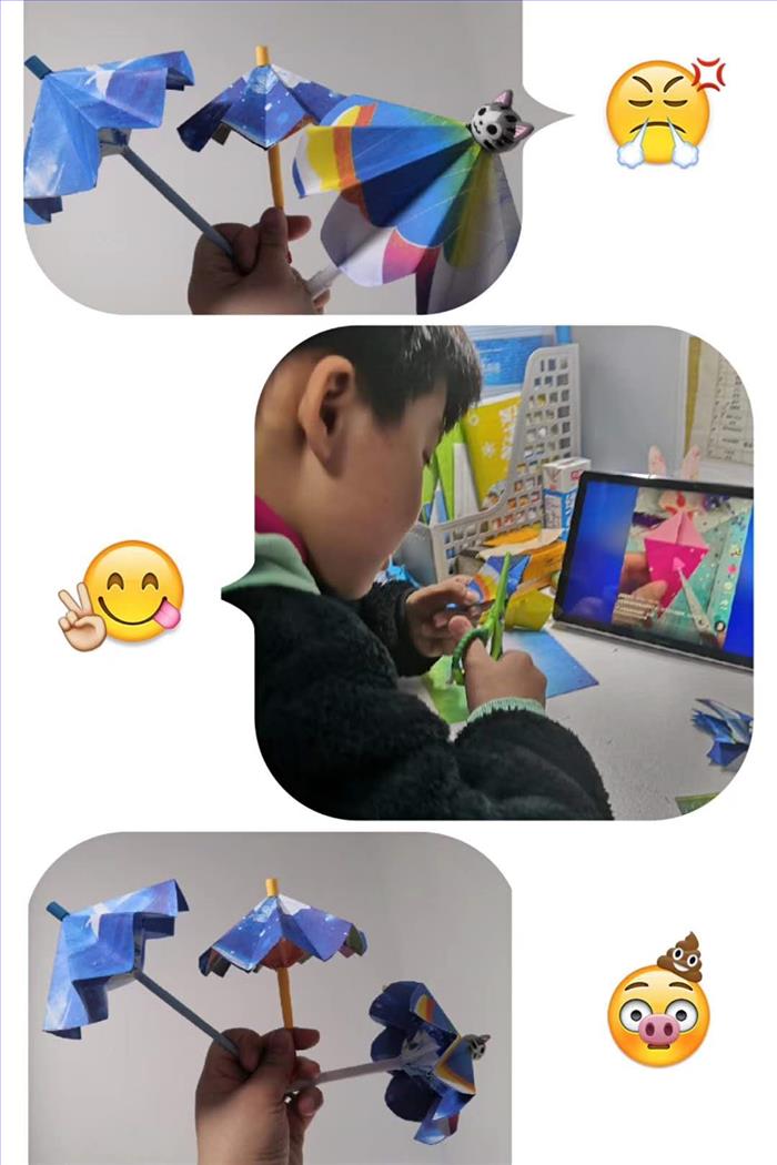 除了玩音乐,在家的日子,我们还一起研究起了折纸。每天晚上,睡觉之前,我们三个人会一起跟着视频学折纸。你们看,一整个寒假,我们收获满满。