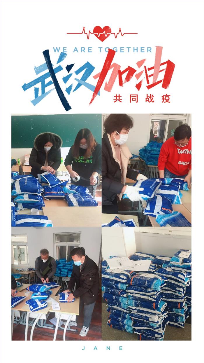 短短几日,总务处领导带领志愿者们戴着口罩、手套,逐一将不同年级的教科书进行了分类,分两校区为全校1300多名学生的教材完成了两次打包工作,先用学校购买的袋子分装,再用邮政提供的袋子规范包装。期间,为了保证不接触感染源,每位工作人员以方便面为午餐,工作时不进水。无数次的弯腰、起身让他们第二天基本无法站直,长期戴着口罩进行分拣,同样给分书工作造成了阻碍,他们需要消耗比平时更多的体力。