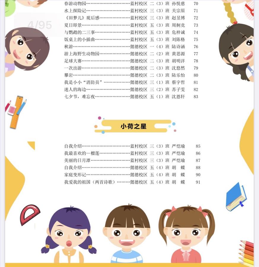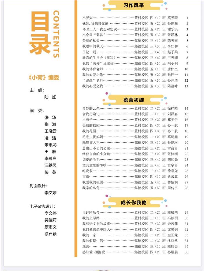 本期《小荷》,遴选了2019学年第一学期同学们的习作,经过征稿、选稿、改稿、校稿、设计电子杂志等环节,编辑老师以及学校全体语文老师给你呈上这期内容丰富、文质兼美、设计美观、富有童趣的《小荷》。