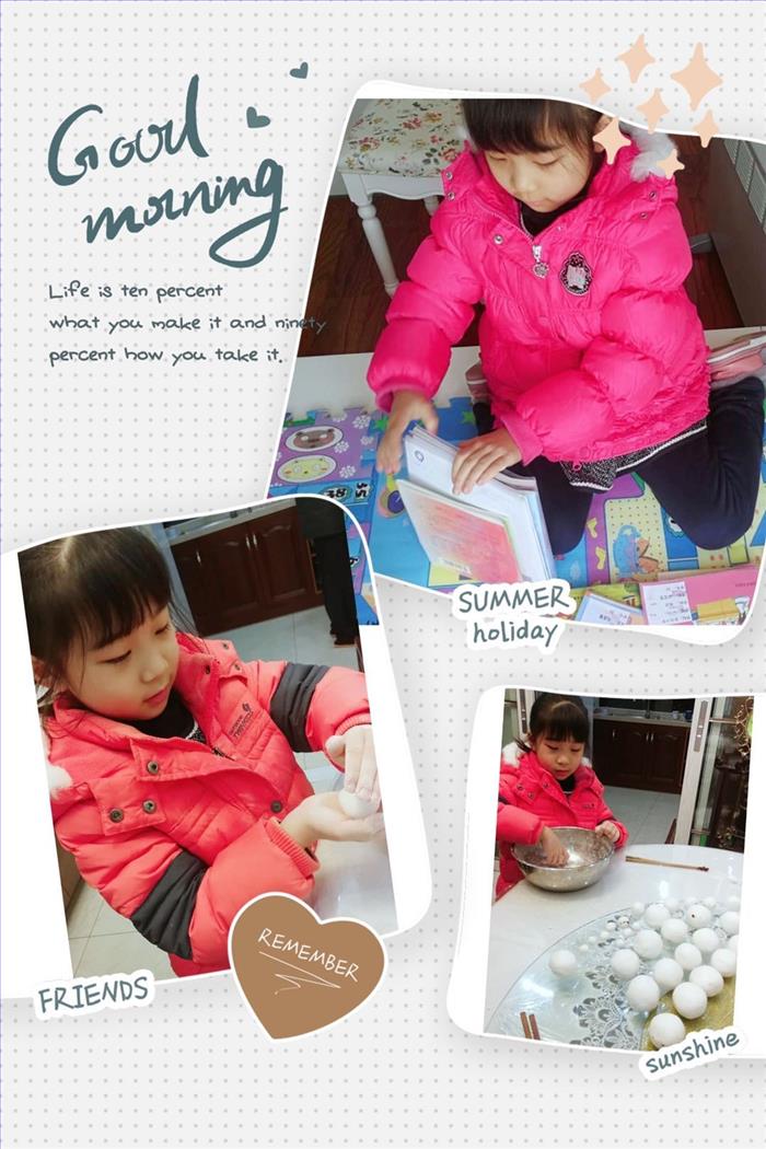 在没有父母督促,而且都是在线学习的情况下,孩子的学习自觉性和效果是爸爸妈妈有所担心的。我们和马昱萱经常保持电话和视频沟通,了解她最近的状态,有什么不会的题目;制定一些小小的目标,比如这周要把哪些英语段落学完并能背诵;有时候还会自己设计,给她布置一些题目,看看她究竟学得怎么样,能不能举一反三。教育学习从来都不只是学校老师的事情,需要家校共同努力,让孩子养成一以贯之的良好习惯,才能逐渐取得进步。除了知识学习方面,生活技能的提高也是必不可少的。离开了爸爸妈妈的陪伴,马昱萱学会了自己整理书本,自己洗澡,给大人们做节日卡片等,还会跟外公外婆一起包汤圆。换了一个环境和生活方式,我觉得孩子也有了新的收获。