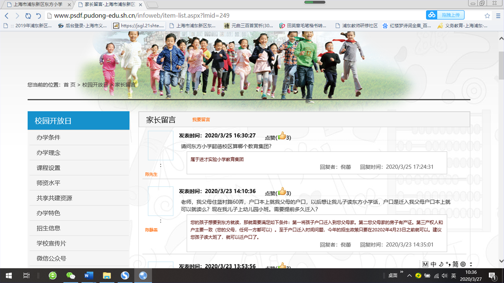 7天的网上校园开放活动如期完成,期间共回复家长咨询23人次。招生工作的前奏曲已响起,之后还有入园招生政策宣讲、新生验证等一系列工作,我们依然会按照要求,扎实、规范地开展。期待在9月,一群可爱的一年级新生加入我们东方的大家庭。