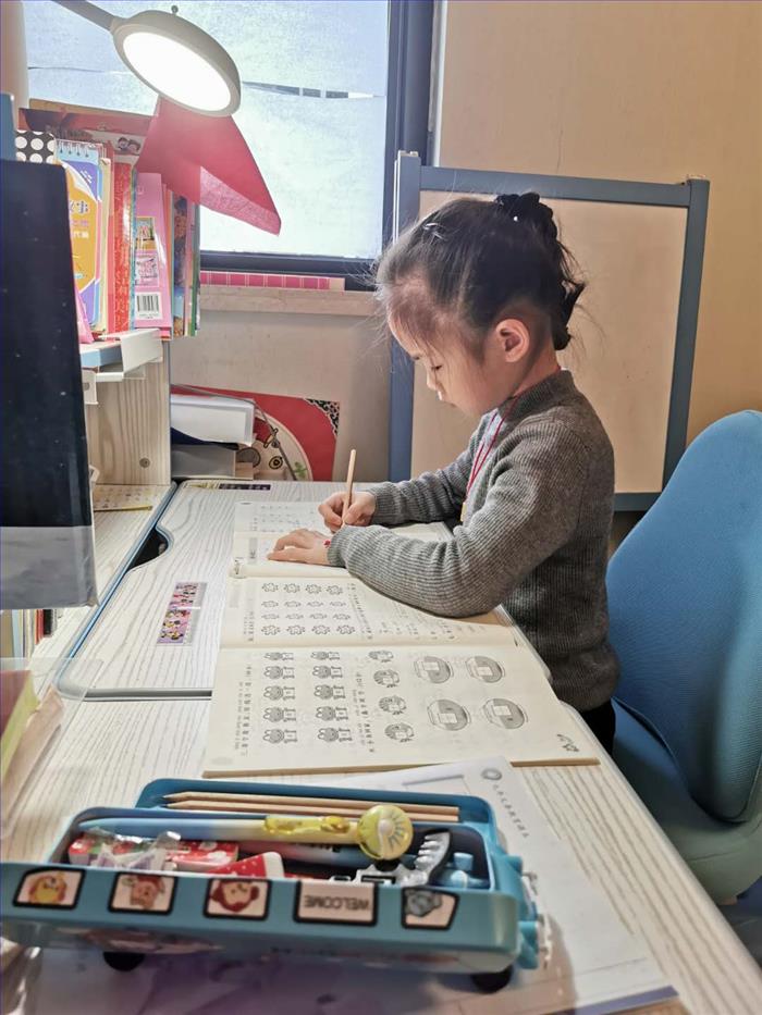 吴亦瑶是东方小学蓝村校区一2班的学生。受疫情影响,她和爸爸妈妈不得不在家开启线上学习和居家办公的模式。然而,这段“禁足”的日子却促成了难得的亲子陪伴时光。这也让平时工作繁忙的爸爸有了更多时间了解女儿日常情况。一家人在一起充实而美好,同时吴亦瑶同学也在爸爸妈妈的帮助和引导下合理安排每一天的生活和学习。