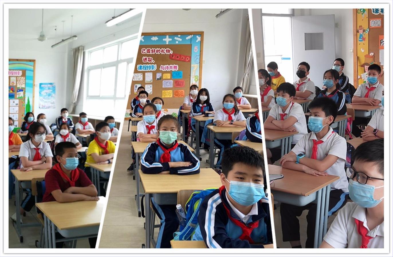 复学后的第一课,在熟悉的教室中,东方师生共同观看了东方小学为学生拍摄录制的“一日行规”复学视频,了解复课防疫规范。