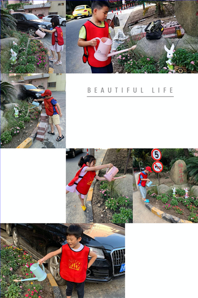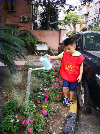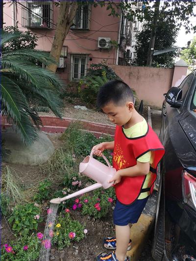 那天天气炎热,艳阳高照,知了唱起了动听的歌谣。经过几天的太阳暴晒,小区的花花草草无精打采,口渴极了。这些小小志愿者拎着水壶,将水淋在花花草草的身上,花草们终于痛痛快快地洗了个澡。此时郑博豪的脸上也挂满了汗珠,但看到花坛得到了改善,为小区做了一些力所能及的事,他感到十分开心。