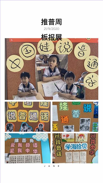 各班以“中国娃说普通话”、“爱我母语,爱我中华”等为主题设计板报,创设推普氛围,增强了全体师生的语言文字规范意识。