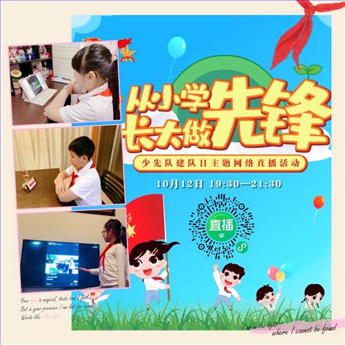 10月12日晚19:30.东方的队员们准时相聚直播间,共同收看“从小学先锋 长大做先锋”少先队建队日主题网络直播。在这里我们“追寻”“理想”,我们“传承”先辈志向,我们了解到一代又一代人的担当,我们重温少先队和共和国共同走过的71周年,致敬革命烈士们为保卫祖国和建设祖国英勇献身的精神,立志“从小学先锋,长大做先锋” 为实现中华民族伟大复兴的中国梦时刻准备着!