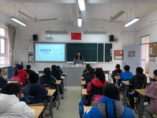 学员走进五(1)班,观摩周以竹老师的主题班会课--《我爱读书》。