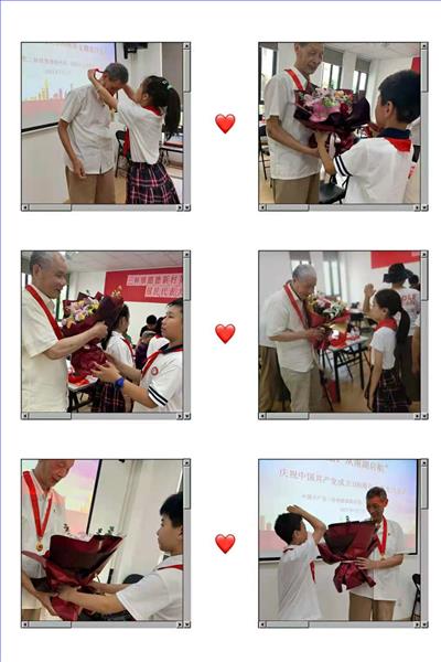 建党100周年,有幸为老党员献花,一起做红船,唱红歌。很庆幸我能生活在这个美好时代,我一定要努力学习,争取加入中国共产党。