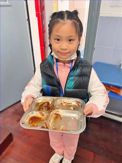 莫菲同学是一个非常优秀的孩子,别看她个子小,但是每次在学校用餐的时候她都一口一口把饭菜吃完,不管是蔬菜还是肉类她都能够做到全部光盘,由于长得各自小,妈妈时长叮嘱她要多吃饭餐,不浪费粮食,因此在学校她都能够慢慢的把饭餐都吃完。这次也是经过班级的评选,最后成为光荣的光盘之星,希望能够在未来的日子里继续保持初心,用自己的行动感染周围的同学都进行光盘计划。
