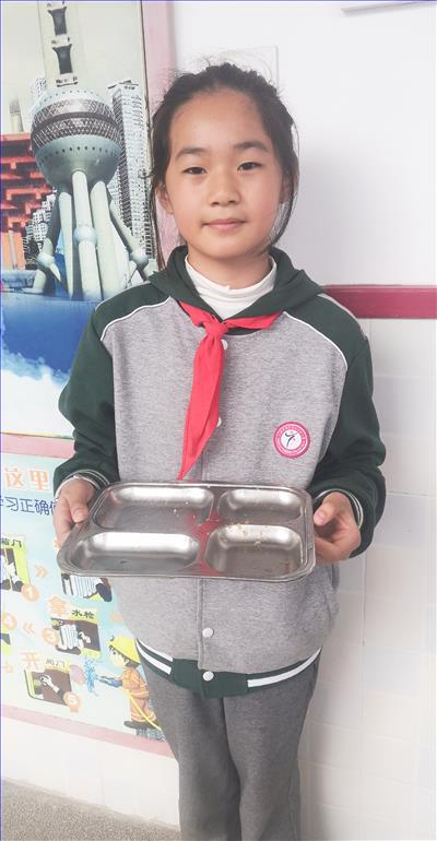 她是一位活泼可爱的小女孩,但在日常的学习和生活中,她一直秉着勤俭节约这一中华民族传统美德,把“光盘行动”落实在自己的一举一动中。她是同学们眼中节约粮食的表率,行动上的楷模。