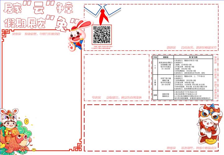 虎年喜结丰收果,兔岁欣开幸福花。沐浴着冬日的暖阳,2022年这个不寻常的学期结束了,感谢大家一直以来对学校工作的关心与支持。回顾2022,我们有太多的成长和感动;展望2023,将有更多的梦想与期待。为了让同学们过一个快乐、充实、安全、健康的寒假,学校精心设计了丰富多彩的实践活动,希望大家积极参与,大胆创造。期待这份寒假生活指南带给大家更多姿多彩的体验,更有滋有味的成长,不负时光,“兔”飞猛进!一起来查收这份寒假生活指南吧!