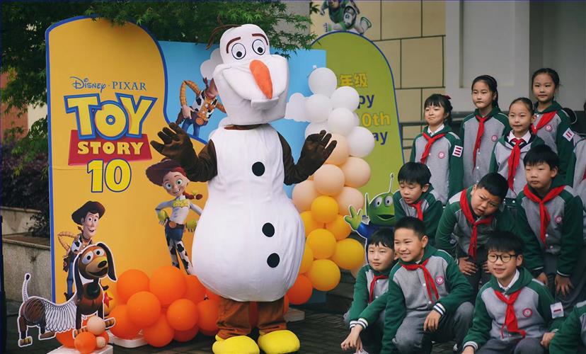 缤纷的气球串成拱门,迎接着寿星们的到来;幸运的彩带从大厅系到小剧场,一路上承载着学校老师和家委无私的爱。小剧场门口的迪斯尼朋友米妮、米奇、唐老鸭、黛丝也为来宾们送上别具一格的祝福。