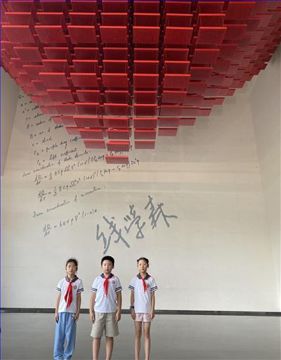 一进馆,队员们就被眼前的红色立体造型所震撼住了。看了旁边的介绍队员们了解到原来它叫“升腾的智慧”,由4015页“钱学森手稿”悬空组合,如同一朵蓬勃的蘑菇云向天际升腾。