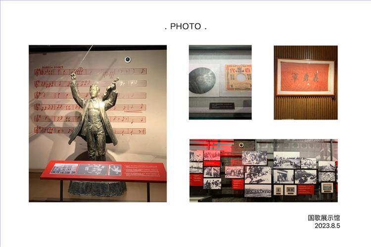 今天我和同学们一起参观了国歌展示馆。听着讲解员的一一介绍,田汉创作完成了抗战影片《风云儿女》,聂耳为主题歌《义勇军进行曲》谱曲,上海由此成为中华人民共和国国歌的诞生地,这首歌唱出了广大人民反对列强侵略的声音,吹响了中华民族抵御外来侵略的时代号角。展示馆里还有很多历史照片和历史文物,证明了日本侵略留下的铁证。这次参观给了我很大的启示,使我更加明白了祖国的强盛是需要每个人的共同努力,同时也更加明白了国歌的珍贵和文化的重要性。我将永记国歌展示馆所传达的爱国主义和文化自信精神,将这种精神贯彻到日常生活中,为祖国的繁荣昌盛贡献自己的力量。